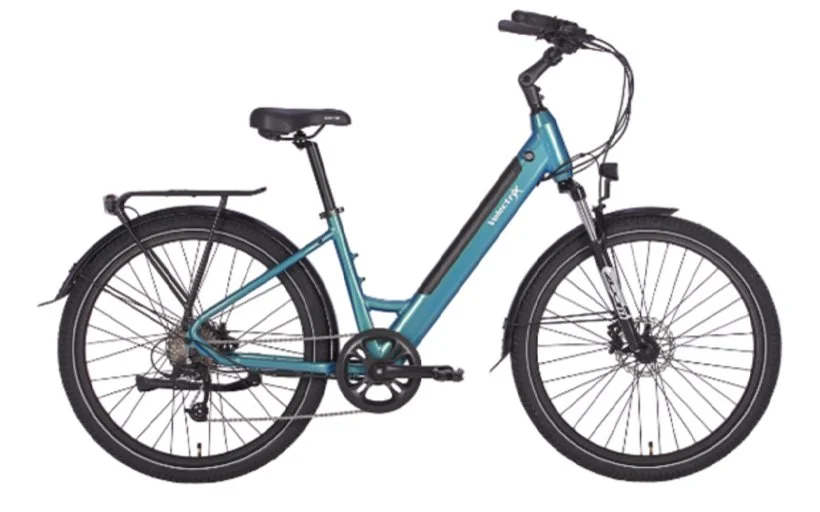 The Velectrix Urban Pulse Step Through has 5 pedal assist modes, 8 speed, rear pannier rack and built in front and rear lights.