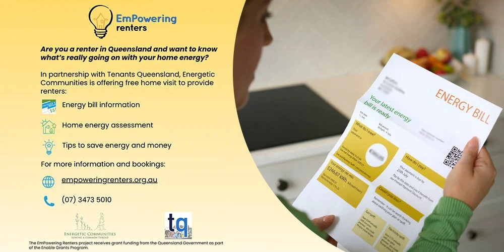 Energetic Communities in partnership with Tenants Queensland is running Empowering Renters, offering Free Residential Efficiency Scorecards and Advice for Renters.